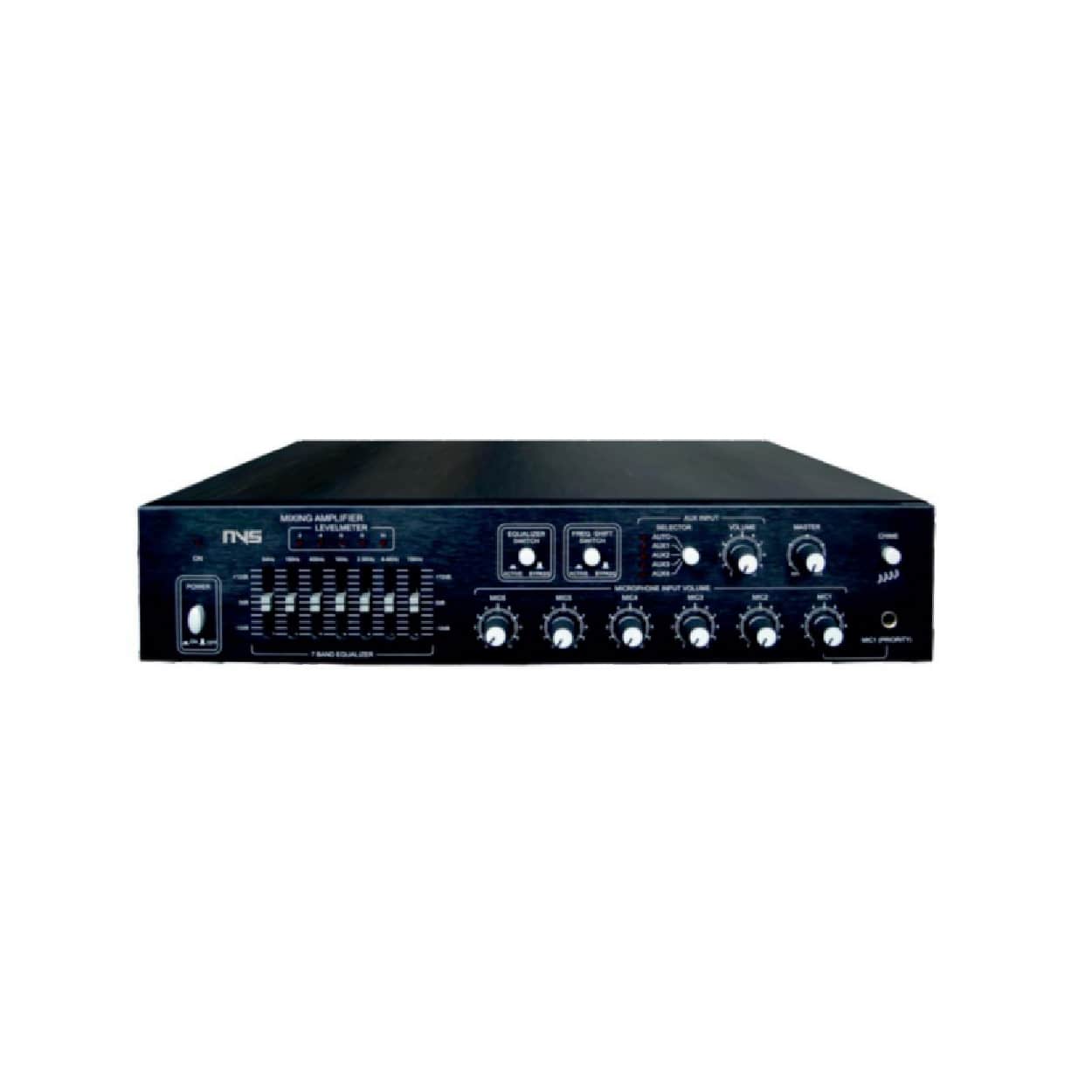 The NVS-90180121MA is a 10 input Mixer Amplifier with Equalizer and have rated voltage outputs of 100V, 70V, and rated resistance outputs of 4-16Ω. It provide 4 audio source input ports, 6 microphone input ports, a line output port and 4 power amplifier’s output terminals. 4 audio source channels can be selected automatically. The loudness of each of the six microphones can be adjusted separately. The total output volume is controlled by a master-volume control. The output can be adjusted using the 7-band equalizers (EQ). The goods offer multiple protection, well-defined functions, and a steady working condition, and can meet the sound amplification and background music needs of a conference site.