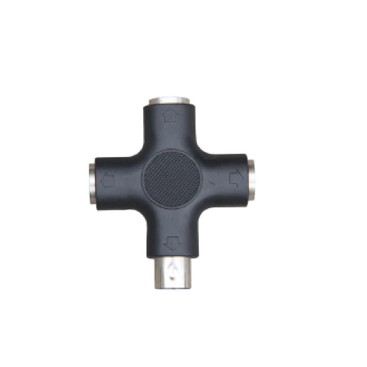 A 4-way conference connector is designed for use in conference systems with shunt connections. It has a single 8-core high-density DIN connection Male Input, connecting to the conference host, and three 8-core high-density DIN connection Female outputs for linking to the conference unit and extension cables.