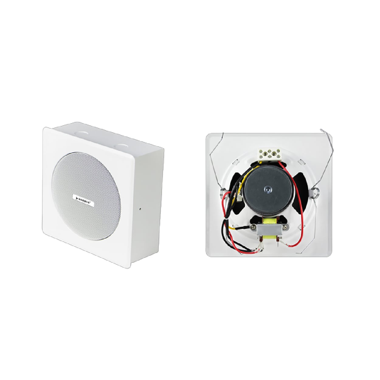 The NVS-EN6MTS is an EN54-24 certified commercial fireproof wall-mount speaker designed for use in voice alarm and public address (PA) systems, ideal for environments like schools, offices, hotels, and airports. It features a 5″ full-range driver unit and offers selectable rated power output of 1.5W, 3W, or 6W at 100V. The speaker supports 100V or 70V line inputs with an integrated transformer, ensuring compatibility with various PA systems. Built with a ceramic connector, fire dome, 95°C fire-resistant cable, and thermal fuse, it ensures safety in the event of a fire. The steel enclosure, steel grille, and white fire dome provide durability and a clean aesthetic, while the quick wall or surface mount installation via screw holes makes it easy to set up in any environment.