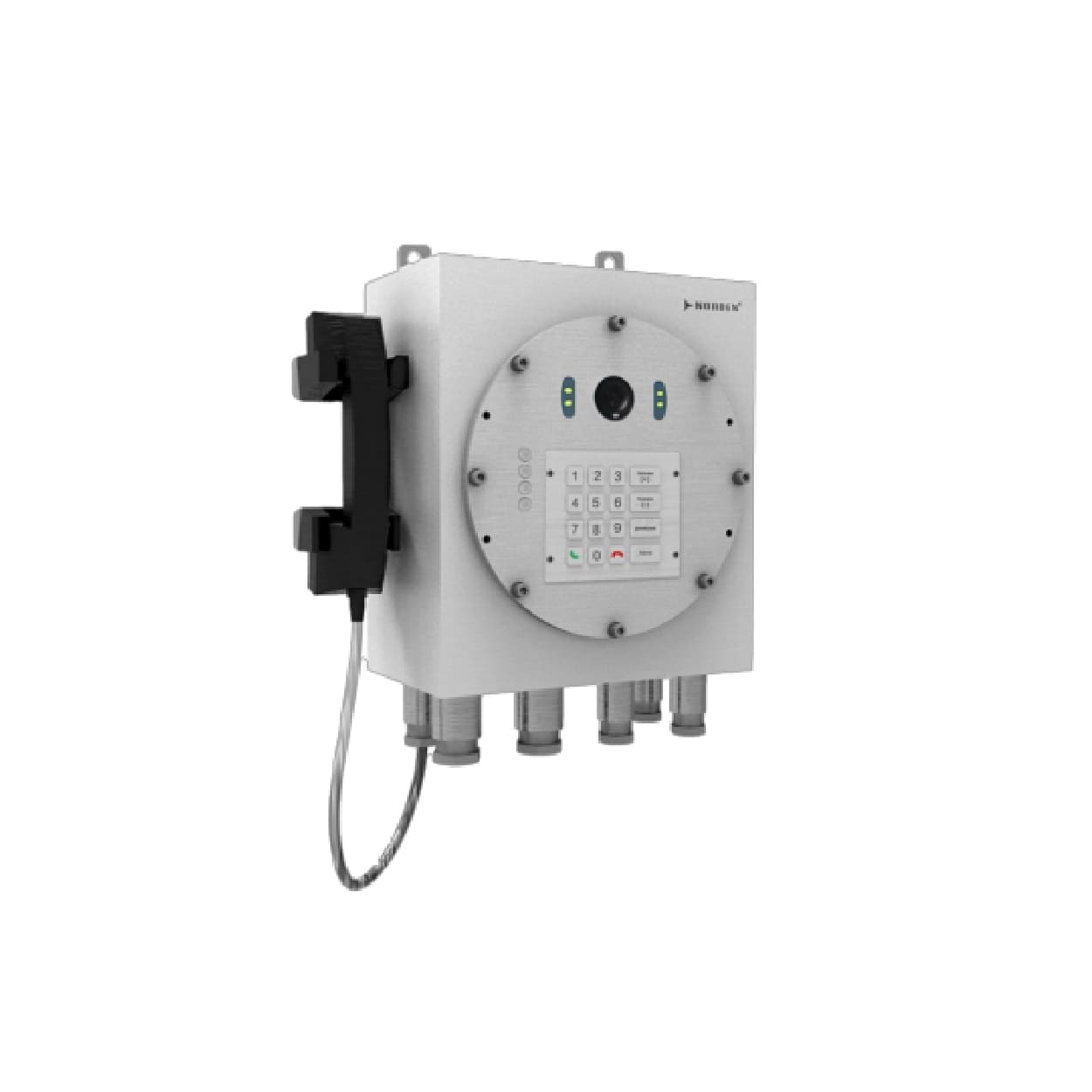 NVS-IP100027IC is an IP-based video intercom terminal designed for hazardous environments with explosive gas or dust. It features an explosion-proof stainless-steel enclosure compliant with industrial safety standards, ensuring high structural integrity and corrosion resistance. The device is rated IP68 for complete protection against dust ingress and long-term submersion. It is engineered for deployment in oil refineries, petrochemical plants, gas stations, and similar ATEX/IECEx-classified zones requiring intrinsically safe communication endpoints.