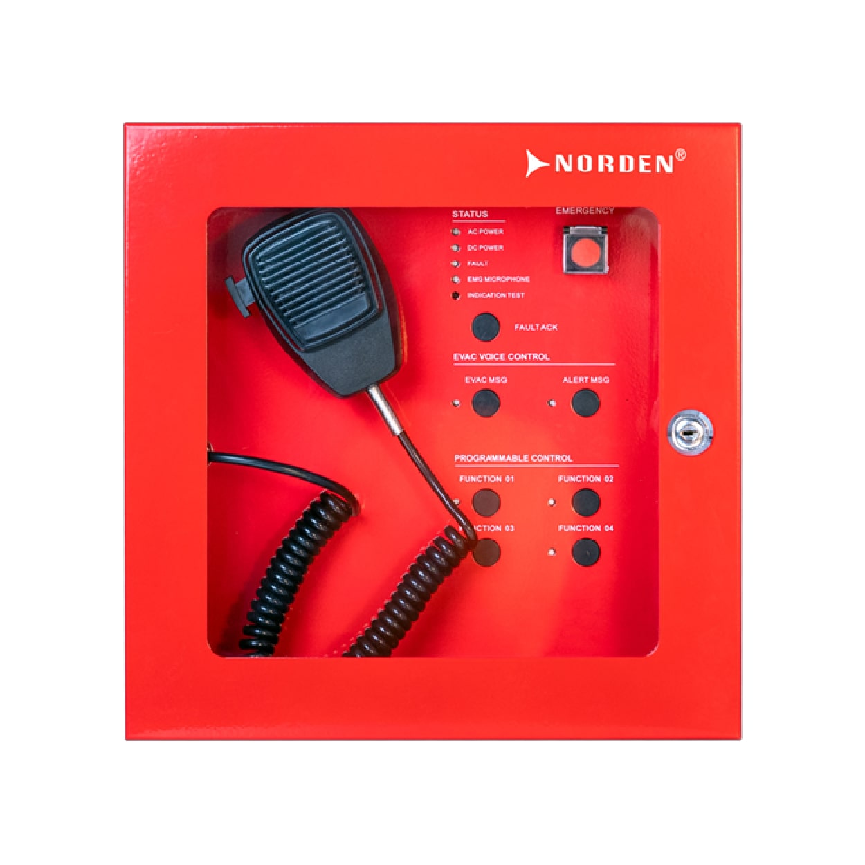 The NVS-EN85FM Fireman’s Microphone is an EN54-16 certified device designed for emergency use with the NVS-EN85CT Voice Alarm System. Housed in a durable, wall-mountable cabinet, it features an echo-cancelling microphone, pre-recorded message playback, and live announcement capabilities. Fire personnel can broadcast emergency messages, reset faults, and acknowledge the emergency state, ensuring clear communication during critical situations. Suitable for both indoor and outdoor use, it complies with EU Construction Products Regulation and EN54-16:2008 standards, providing reliable control in emergency and evacuation scenarios.