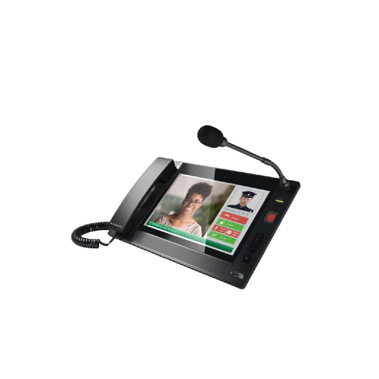 The NVS-IP100026PM is an IP remote paging microphone with video intercom, featuring a 10.2″ TFT capacitive touch screen and 13MP HD camera for two-way video calls. It includes a 3W speaker, unidirectional condenser mic, and intelligent face recognition chip for local identification. The device supports pre-recording, file broadcasting, and provides 1×Relay Input/Output for integration with emergency devices and access control systems.