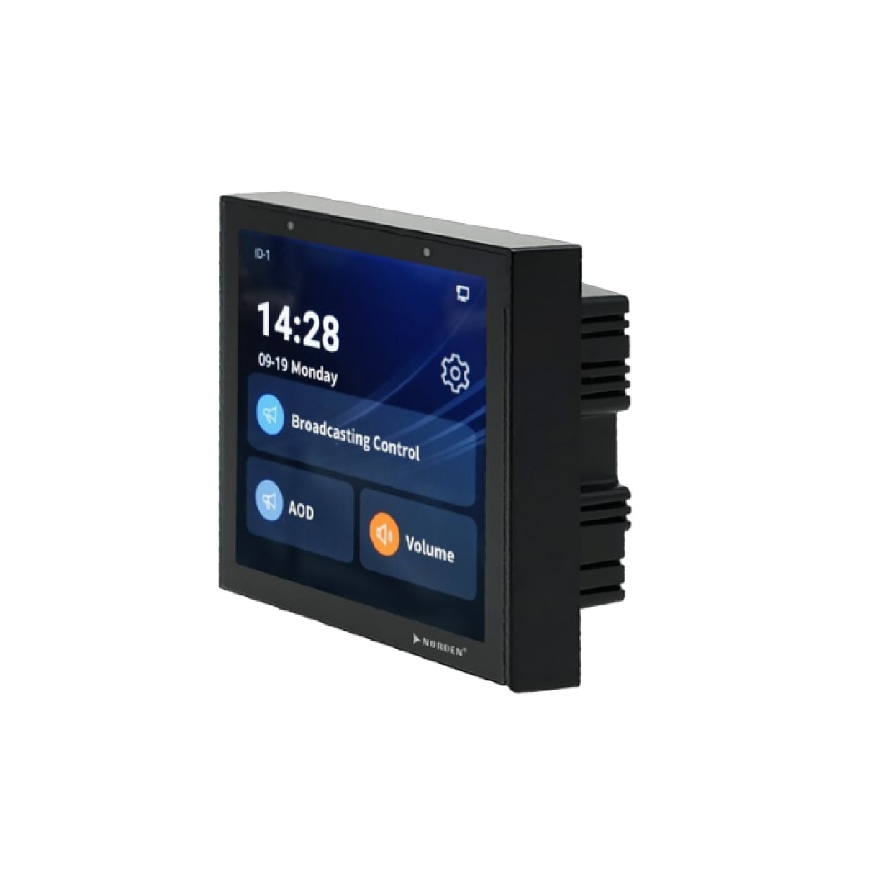 The NVS-IP100049TP is a sleek in-wall control panel fits standard 86-type boxes and features a 4-inch capacitive touchscreen (480×480) with intuitive UI. It supports IP-based task control, manual AOD playback, and remote volume adjustment. Unique features include real-time status monitoring, scheduled task automation, and seamless access to centralized MP3 media libraries. Equipped with a 10/100Mbps RJ45 port, it ensures stable Ethernet connectivity across subnets and routers, making it ideal for intelligent audio distribution systems.