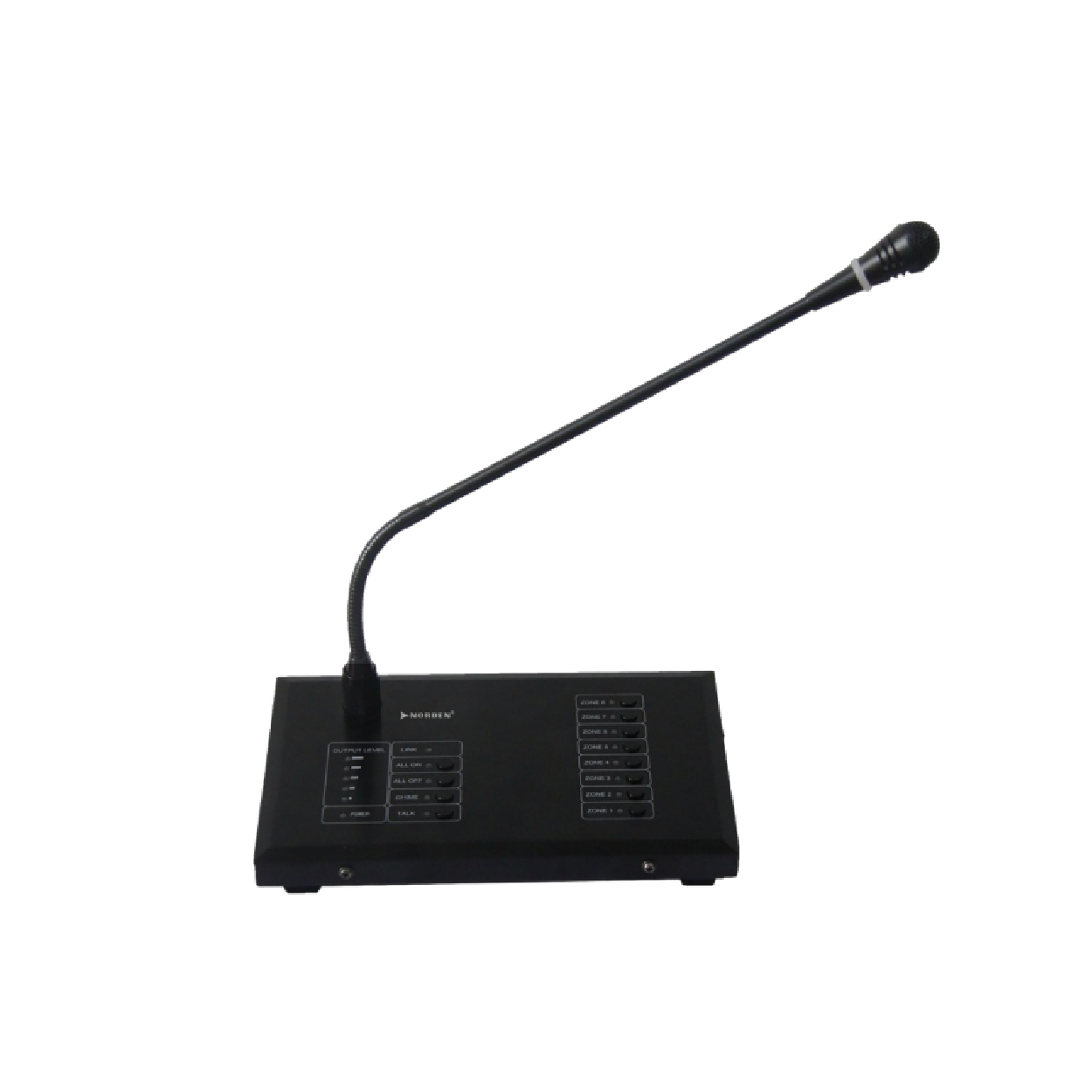 The NVS-PA0002008PM is a remote paging MIC for NVS-PA0001008MP digital audio matrix public address system. Each MIC control 8 zones. Each zone can realize independent control or one key switch and it supports multi-level extension.