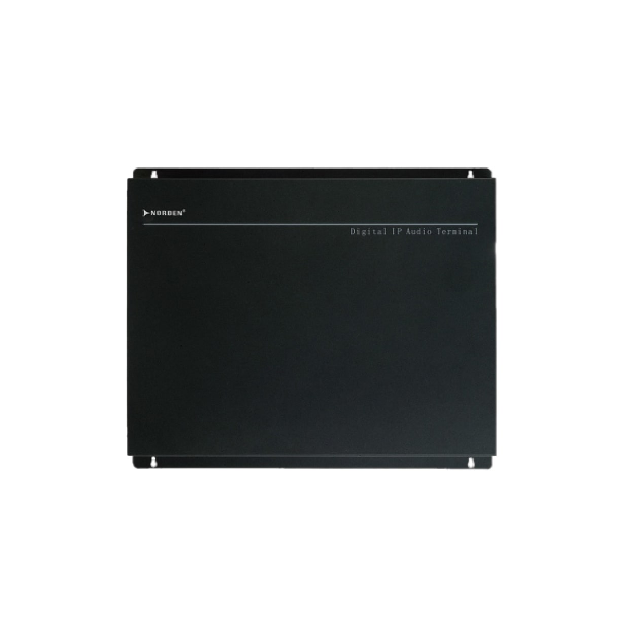 The NVS-IP100030AM is a wall-mount IP amplifier powered by an industrial-grade high-speed dual-core (ARM+DSP) processor with ≤1s startup time. It features a 60W Class-D digital amplifier (100V) for high efficiency and low heat emission. The device includes an RJ45 interface supporting cross-router and cross-segment networking, one audio line input for external surveillance microphones, and one audio output for connecting to external amplifiers for sound reinforcement.